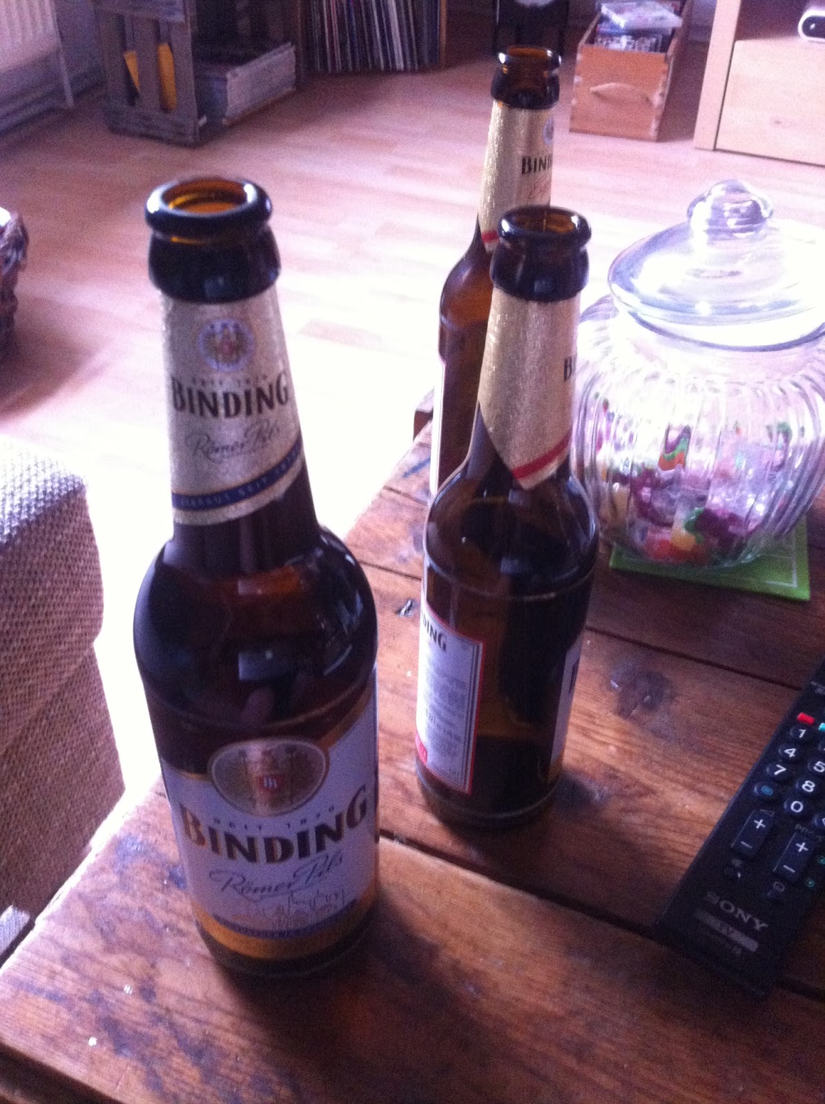 - 17:29 Noch 31 Minuten bis zum Kick-Off und das die deutsche Fernsehlandschaft hat wieder viel zu bieten: Entweder gibt es gespielte Schicksalsschläge zu sehen oder Pseudonachrichten ("Der härteste Autoübungsplatz Deutschlands"). Mir schwillt dezent die Halsschlagader und öffne zur Beruhigung erstmal ein Bier. Wird Zeit, dass Marius vorbei kommt.